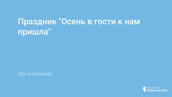 Данное мероприятие включает персонажи: Бабушка-Загадушка, Осень, осенние месяцы, Муравей и многие другие, используются инсценировки песен, игры, также включены хороводы, постановка "Под грибком" (по сказке В.Сутеева "Под грибом"), участниками которой являются дети и их родители.