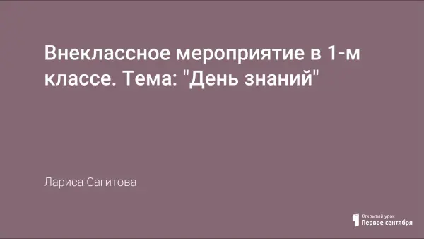 Работа представляет собой урок, посвященный Дню знаний. Гостями и участниками данного урока являются родители первоклассников. Цель: сформировать положительный настрой на общение, развивать позитивные эмоции, заинтересовать детей обучением.