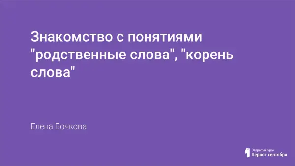 На уроке формируется понятие "родственные слова", проводится работа по осмыслению понятия "корень слова", открывается способ действия по нахождению в слове корня. Урок сопровождается компьютерной презентацией.