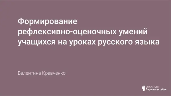 Учить детей осознанному овладению языком и умелому пользованию им – вот задача учителей русского языка. Её успешное решение во многом зависит от формированности у школьников рефлексивно-оценочных умений. На уроках русского языка нужно учить детей определять цель учебной деятельности, оценивать свои возможности перед изучением темы, осуществлять прогнозирующий, пошаговый, итоговый самоконтроль. Формированию рефлексивно-оценочных умений учащихся способствует методическая организация уроков русского языка.
