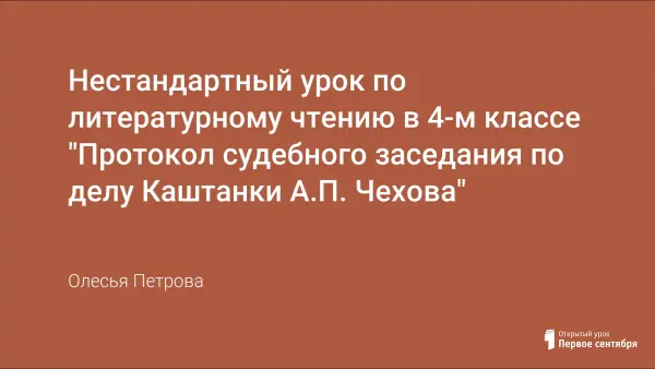 Конспект нестандартного урока литературного чтения в нестандартной форме позволяет учащимся глубже изучить произведение; уметь его анализировать; перевоплощаться в героев; в их образе отстаивать своё мнение. На этом уроке учащиеся раскрывают талант актёрского мастерства, развивают речь и мыслят творчески.