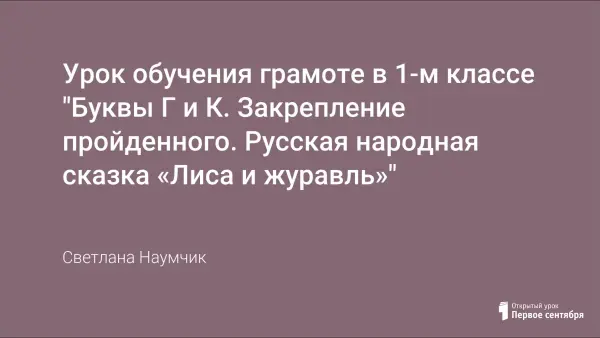 Урок обучения грамоте в 1-м классе "Буквы Г и К. Закрепление пройденного. Русская народная сказка «Лиса и журавль»"