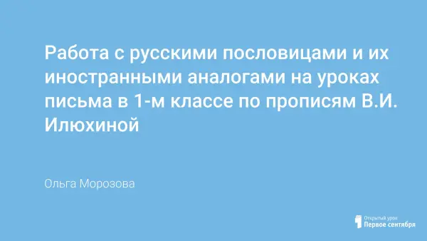 Работа с пословицами на уроках русского языка является неотъемлемой частью образовательного процесса. Учителю необходимо заинтересовать ребёнка, подвести к мысли, что пословица – не архаика, а меткое и образное выражение, которое обогащает речь. В данной статье в помощь педагогу, работающему по прописям Илюхиной, собраны пословицы и их иностранные аналоги, показаны возможности и пути работы с ними.