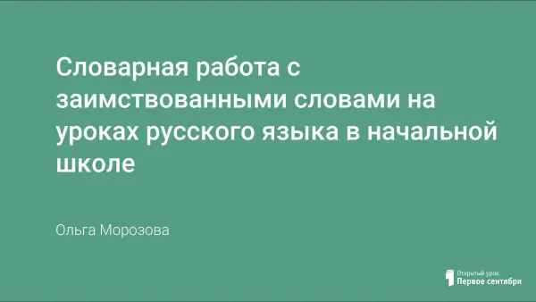 Работа с заимствованными словами начинается только в средней школе. Но известно, что заимствованные слова обогащают нашу речь, делают её более точной, подчас экономной. Поэтому в статье показаны возможные формы работы с такими словами на уроках русского языка в начальной школе.