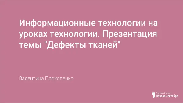Цели урока: формирование представления о видах дефектов тканей и способах определения качества ткани; формирование навыков осуществления проверки качества ткани; формирование проектного и критического мышления, навыков самостоятельной работы с информацией; формирование и развитие трудовых, эстетических и экономических качеств личности.