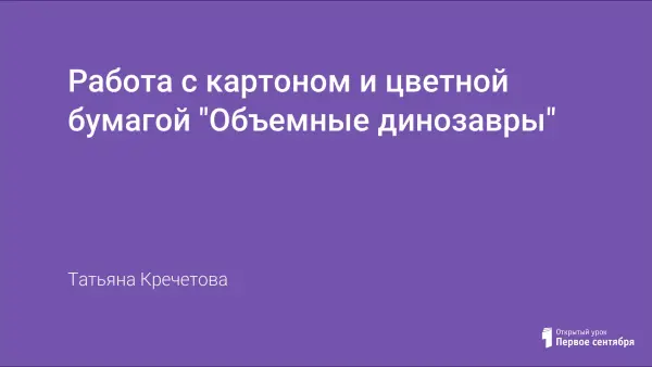 Урок трудового обучения развивают фантазию детей, умение работать с альбомной и цветной бумагой, толстым картоном и ножницами. Развивают интерес к изучению истории, биологии. Данный урок может быть использован при изучении тем о динозаврах в 4-м и 5-м классах, при проведении предметных недель в школе.
