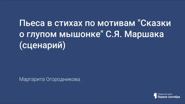 Урок "Хитрый мышонок" – пьеса в стихах по мотивам "Сказки о глупом мышонке " С.Я.Маршака.