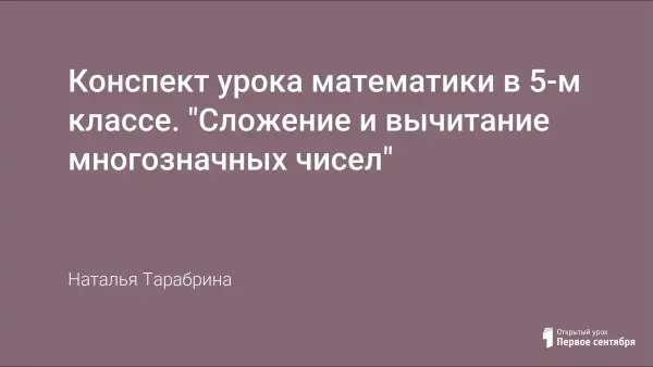 Комбинированный урок математики (5-й класс. Учебник: Математика 5. Зубарева И. Мордкович А.) расширяет знания учащихся по ранее изученному материалу курса начальной школы и опирается на базовые умения учащихся складывать и вычитать трех- и четырехзначные числа столбиком. Данный урок первый в теме «Вычисление с многозначными числами». Знания и навыки учащихся, полученные на данном уроке, необходимы при изучении последующих тем: «Законы арифметических действий», «Упрощение выражений».
