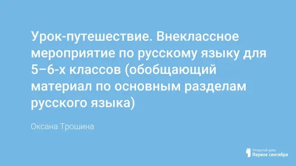 Внеклассное мероприятие "Игра-путешествие" проводится в рамках предметной недели по русскому языку в конце учебного года или как обобщающий урок по основным разделам русского языка. При проведении игры используются информационные технологии, которые выполняют вспомогательную роль, что позволяет учителю значительно расширить формы работы, повысить интерес к предмету и охватить учебный материал, пройденный на уроках русского языка в 5–6-х классах.