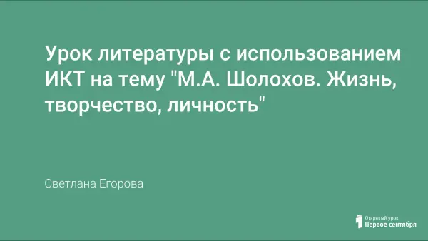 Урок литературы с использованием информационных компьютерных технологий знакомит учащихся 11-го класса с жизнью и творчеством М.А.Шолохова, показывает значение его творчества и общественной деятельности.