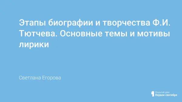Урок литературы с использованием информационных компьютерных технологий знакомит учащихся 11-го класса с биографией и творчеством Ф.И. Тютчева. Такой урок-презентация позволяет расширить рамки знакомства с судьбой поэта, осуществить межпредметные связи с музыкой и живописью.