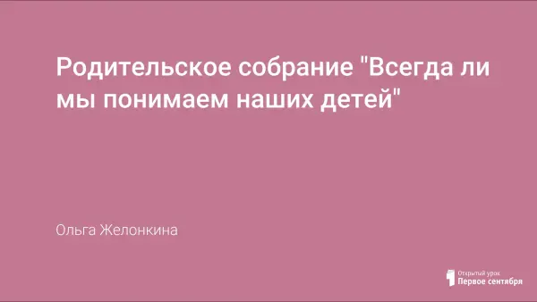 В работе представлено одно из цикла мероприятий по работе с родителями на тему «Всегда ли мы понимаем наших детей». Постепенно педагог старается подвести родителей к пониманию позиции «Ребенок – зеркало семьи», а также дать позитивный настрой, потому что хорошими родителями не рождаются, а становятся в процессе воспитания собственных детей.