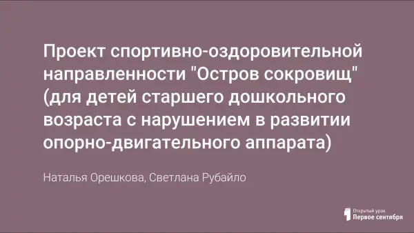 Проект спортивно-оздоровительной направленности "Остров сокровищ" (для детей старшего дошкольного возраста с нарушением в развитии опорно-двигательного аппарата)