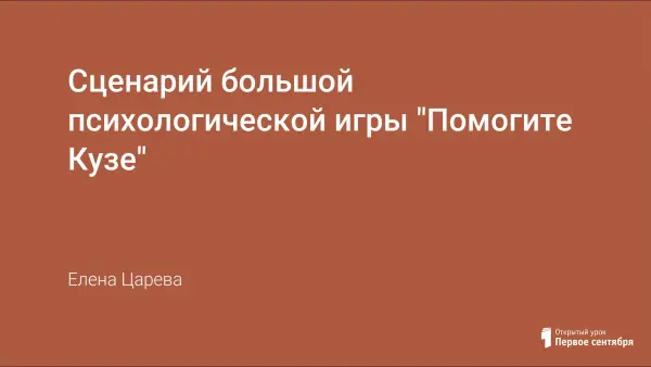 Важным направлением в формировании психологической готовности дошкольников к школьному обучению является развитие коммуникативной сферы детей. От умения выстраивать свои отношения со взрослыми и сверстниками во многом зависит успешность будущего школьника. Большая психологическая игра "Помогите Кузе" направлена на усвоение норм общения, социально-приемлемого поведения, развитие социальных эмоций, готовности к сотрудничеству, взаимопониманию, дружбе. Игра способствует улучшению социально-психологического климата в коллективе.