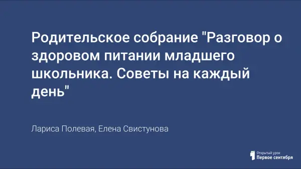Родительское собрание "Разговор о здоровом питании младшего школьника. Советы на каждый день"