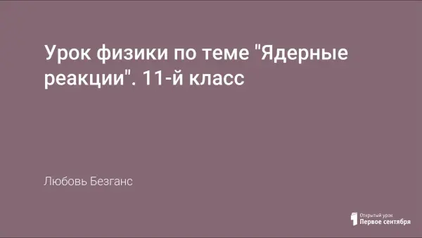 Урока призван ознакомить учащихся с ядерными реакциями, с процессами изменения атомных ядер, превращением одних ядер в другие под действием микрочастиц. Подчеркнуть, что это отнюдь не химические реакции соединения и разъединения атомов элементов между собой, затрагивающие только электронные оболочки, а перестройка ядер как систем нуклонов, превращение одних химических элементов в другие. Урок сопровождается презентацией.