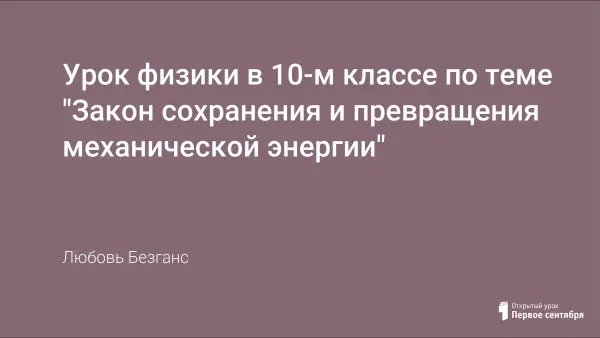 На уроке применяется технология развивающего обучения; исследовательские методы в обучении; обучение в сотрудничестве. Основная цель: добиться понимания учащимися понятий «полная механическая энергия тела», «полная механическая энергия замкнутой системы тел», «изменение энергии».