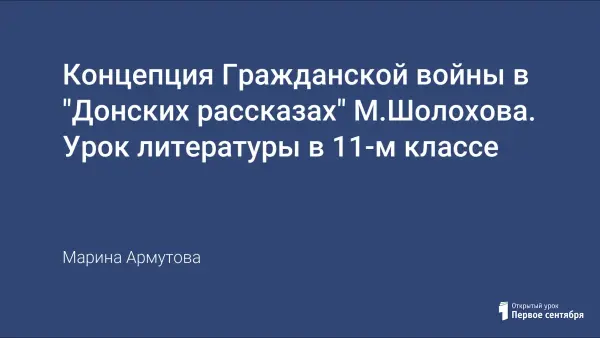 Цель урока - изучить "Донские рассказы" М.Шолохова, выявить концепцию гражданской войны в ранних произведениях М.Шолохова на примере рассказов "Родинка", "Чужая кровь". Задачи: формировать умение самостоятельно работать с текстами рассказов, обобщать, сравнивать, делать выводы; развивать творческие способности, монологическую речь, ассоциативный аппарат учащихся, используя в ходе урока такие приемы педагогической техники, как "Ромашка Блума", прием ассоциации, составление синквейна, эвристическая беседа, прием "Незаконченное предложение".