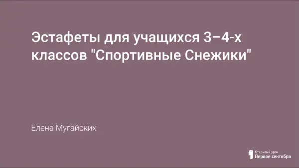 Предлагаю краткий сценарий соревнований - эстафеты для детей 3–4-х классов "Спортивные Снежики". Каждый год у нас в городе Снежинске проводится спартакиада учащихся школ. Открытие спартакиады - большой спортивный праздник, частью которого являются "Веселые старты".