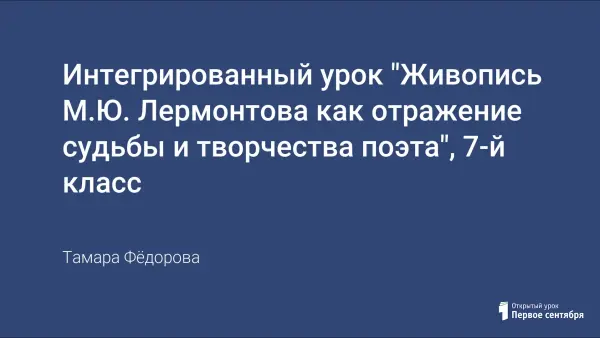 Урок литературы в 7-м классе на тему «Живопись М.Ю.Лермонтова как отражение судьбы и творчества поэта» открывает новые факты биографии М.Ю.Лермонтова, показывает многогранность натуры поэта плеяды «золотого века» русской литературы, знакомит с малоизвестной стороной творчества Лермонтова – его живописью. Развитие речи учащихся, их эстетического вкуса.