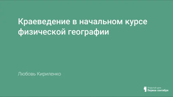 Краеведение в начальном курсе физической географии на примере г. Лабинска и Лабинского района. Программа географии в 6-м классе включает знакомство с широким кругом краеведческих сведений, правильное использование которых способствует формированию многих общих и единичных географических понятий у учащихся.