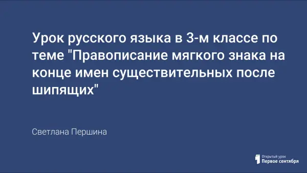 Урок русского языка в 3-м классе по теме «Правописание мягкого знака на конце имён существительных после шипящих» по типу является уроком изучения нового материала. На основе ранее полученных знаний учащиеся знакомятся с грамматической функцией мягкого знака в русском языке. На уроке используются разнообразные формы работы с классом, занимательный материал, что позволяет активизировать познавательную деятельность учащихся.