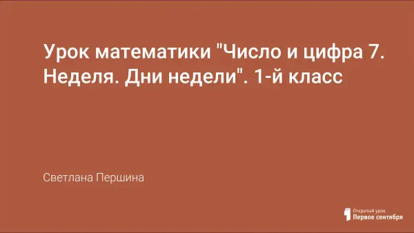Данный урок по типу является уроком получения новых знаний. Учащиеся знакомятся с числом 7, его особенностями, интересными фактами из истории данного числа, учатся писать цифру 7. На уроке учащиеся рассматривают понятие «неделя», названия дней недели, их порядком. Использование разнообразных форм работы с детьми, занимательного материала, способствует активизации познавательной деятельности учащихся.