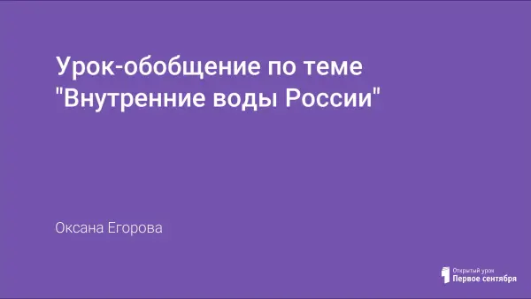 Урок-обобщение по теме «Внутренние воды России» закрепляет и совершенствует знания раздела географии 8-го класса «Внутренние воды».