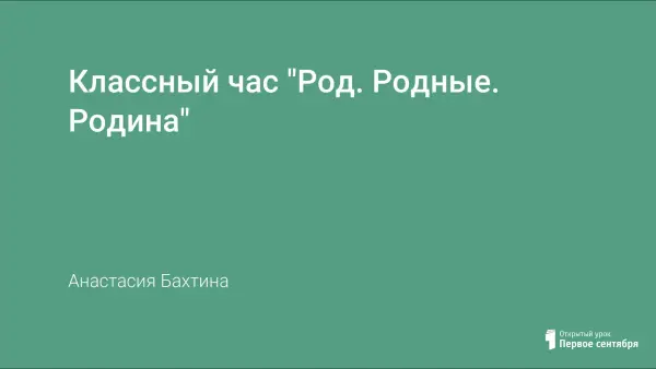 Это мероприятие призвано связать воедино целый ряд аспектов: историческую связь поколений, духовное родство (менталитет) русских людей, богатство и красоту природы нашей Родины, близость, теплоту человеческих отношений между родственниками. Всё мероприятие разбито на 2 этапа. На первом этапе дается объяснение понятий РОД, РОДИНА с точки зрения литературной семантики, исторических знаний, духовного смысла, заложенного в данные понятия. На втором этапе детей подводим к тому, что все наши корни из далекого исторического прошлого так или иначе связаны с Родиной, и судьба наших родных связана с судьбой России; здесь уже на более доступном детям материале, с опорой на их жизненный опыт идет рассказ о родословной именно их семьи, объясняется важность теплых человеческих взаимоотношений в родственном кругу.
