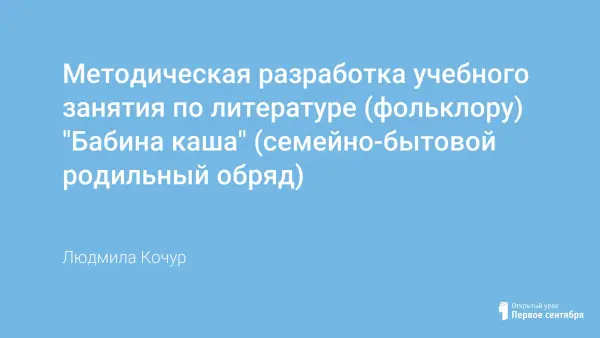 Методическая разработка учебного занятия по литературе (фольклору) "Бабина каша" (семейно-бытовой родильный обряд)