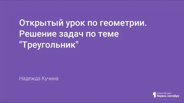 Урок геометрии "Решение задач по теме "Треугольник", провожу в 9-м классе, когда пройден весь учебный материал. Цель урока состоит в повторении, обобщении и систематизации знаний по данной теме и охватывает материал 7–9-х классов. Задачи для урока взяты из сборника для подготовки к ЕГЭ, 2006 года.