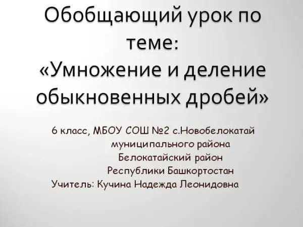 Данный урок является уроком обобщения изученной темы и подготовки к контрольной работе. При планировании учтены возрастные и психологические особенности данной возрастной группы. Важное место в данной теме занимают задачи на нахождение части от числа и нахождение числа по известному значению его дроби. При решении таких задач для лучшего восприятия я требую от детей составление схем.