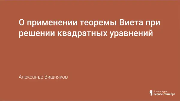 Большинство учащихся при решении полных квадратных уравнений применяют только один способ - формулу корней квадратного уравнения. Для учеников, хорошо владеющих навыками устного счета, этот способ явно нерационален. В предлагаемой статье рассмотрены различные виды квадратных уравнений, для которых применение теоремы Виета дает быстрое решение.