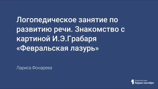 В данной работе представлен практический материал по развитию речи младших школьников по картине. Цель логопедического занятия: развивать связную речь, зрительное и слуховое восприятие, творческое воображение через эстетическое восприятие произведений искусства; воспитывать чувство красоты, любовь к природе.