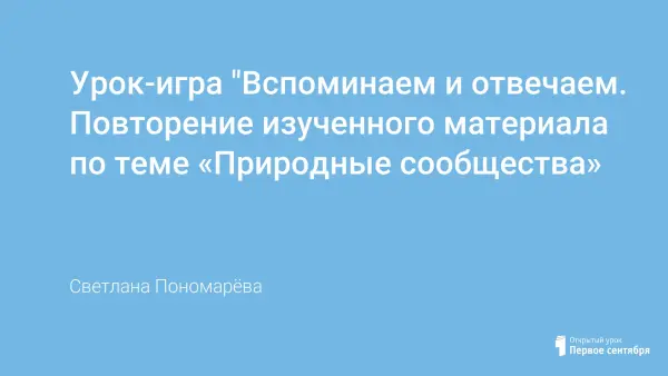 Материал к уроку-повторения по теме "Природные сообщества". Основная цель уроков повторения изученного материала заключается в предотвращении забывания усвоения материала, углублении его связей с ранее изученным материалом, уточнении приобретённых представлений.