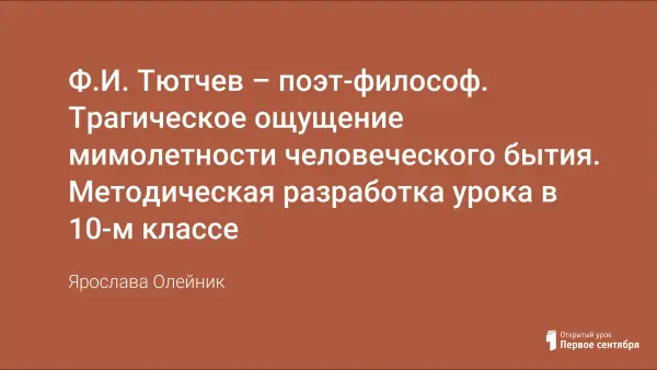 На уроке проводится анализ философской лирики Тютчева, выявляется концепция трагизма человеческого бытия. Цель урока – приблизиться к пониманию сложной тютчевской мысли о человеке в мире, продемонстрировать невозможность абсолютно точного перевода поэтического текста.