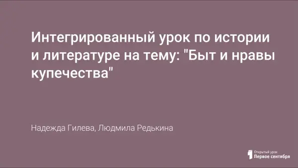 Интегрированный урок истории и литературы был проведен в 10-м классе в связи с изучением в курсе истории учебного материала, связанного с преобразованиями в России во второй половине XIX века, в форме семинара, что позволило ученикам проявить творчество, самостоятельность. На уроке использовались пьесы А.Н.Островского «Бесприданница» и «Гроза», отражающие стремительные перемены в новой, пореформенной России; а также материалы постсоветского периода для сопоставления жизни купечества конца XIX в. и предпринимателей конца ХХ в.
