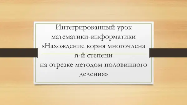 Представлена презентация к интегрированному уроку математики "Нахождение корня многочлена n-й степени методом половинного деления".