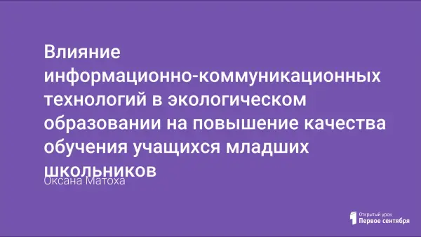 Аннотация – актуальность цели экологического образования и воспитания в городе Благовещенске, заключается в создании функционирующей интегрированной системы экологического образования, обучения и просвещения с использованием информационно-коммуникативных технологий на эффективное усвоение знаний об окружающем мире и бережного отношения к природе младшими школьниками. Большое значение в экологическом образовании имеют информационно-коммуникативные технологии, проводимые в начальных школах. В данном исследовании были проведены интервью с учениками. Данное опросное исследование проводится с помощью описательного метода исследования, а именно интервью. Данные были проанализированы описательно. Исследование показало, что младшие школьники считают, что информационно-коммуникативные технологии экологического образования вносят различный вклад в учеников, школы, школьный персонал, учителей, родителей и школьную среду.