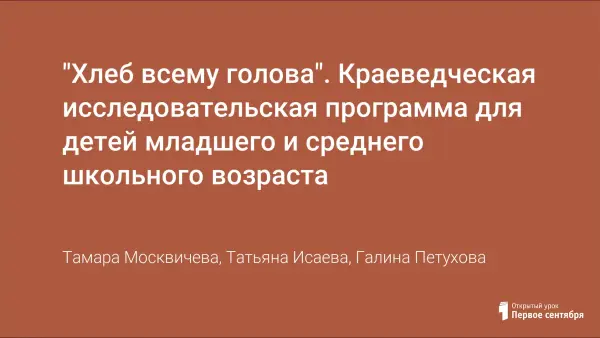 "Хлеб всему голова". Краеведческая исследовательская программа для детей младшего и среднего школьного возраста