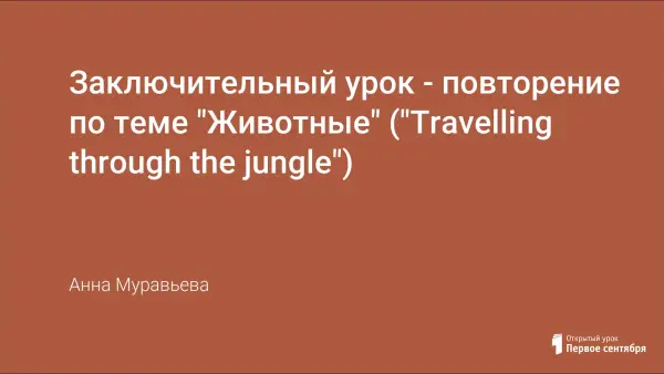 Материал представляет из себя разработку заключительного урока по теме «Животные» для учащихся 2-го класса. Материал подходит также для проведения внеклассного мероприятия по английскому языку для учащихся начальной школы.