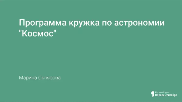 Программа астрономического кружка нацелена на формирование осознанного отношения учащихся к объектам на звездном небе, составлена согласно педагогической целесообразности перехода от изучения физики к раннему изучению астрономии.