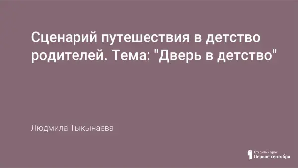 Переход из начальной школы в среднюю каждый ребенок переживает как важный шаг в своей жизни. В адаптационный период необходимо привлечь родителей к работе класса, чтобы они стали постоянными участниками жизни класса и школы. Представленный классный час «Путешествие в детство родителей "Дверь в детство"».