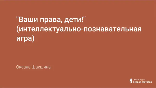 "Ваши права, дети!" (интеллектуально-познавательная игра)