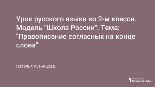 Представлен урок русского языка во 2-м классе по теме "Правописание парных согласных на конце слова". Урок учит подбирать к словам с парными звонкими и глухими согласными проверочные слова, развивает навыки грамотного письма, речь учащихся. Учитель прививает интерес к родному языку, учит сотрудничать с одноклассниками.