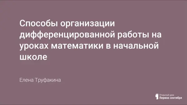 Организация дифференцированной работы на уроках в начальной школе является одним из важных компонентов учебно-воспитательного процесса. В работе изложены способы дифференциации, которые могут быть использованы на уроках математики. В результате дифференцируемого подхода в обучении повышается уровень мотивации учения, каждый ученик обучается на уровне его возможностей и способностей, сильные учащиеся утверждаются в своих способностях, слабые получают возможность испытать учебный успех.