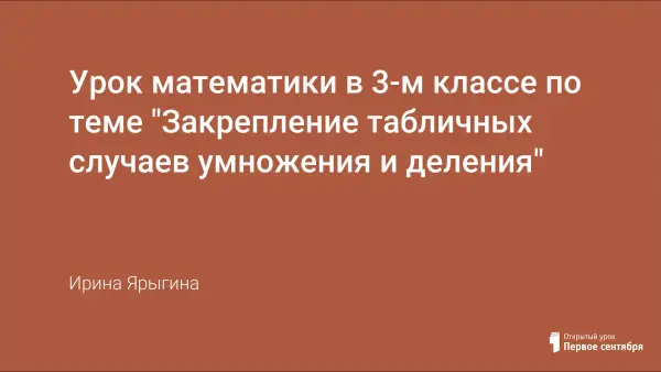 Данный урок математики в третьем классе «Закрепление табличных случаев умножения и деления» составлен по УМК «Гармония» и учебнику Н.Б.Истоминой и направлен на развитие познавательного интереса, творческих способностей учащихся, логического мышления. Урок построен с использованием парной работы, что способствует дружеской, доброжелательной обстановке в классе и повышению самооценки учащихся.