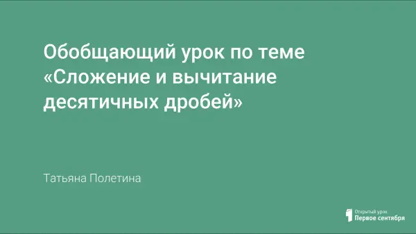 Цели и задачи урока: закрепить навыки сложения и вычитания десятичных дробей; воспринимать информацию на слух и понимать математическую терминологию; применять изученный материал при выполнении разнообразных видов заданий; объективно оценивать свою деятельность и деятельность других; повторить ранее пройденный материал.