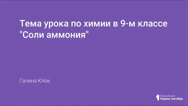 Урок с использованием презентации PowerPoint включает основные сведения о солях аммония, строение иона аммония, химические свойства с фильмом по реактиву Неслера, задания для самостоятельной работы учащихся (тест, дифференцированная работа, лабораторная работа).