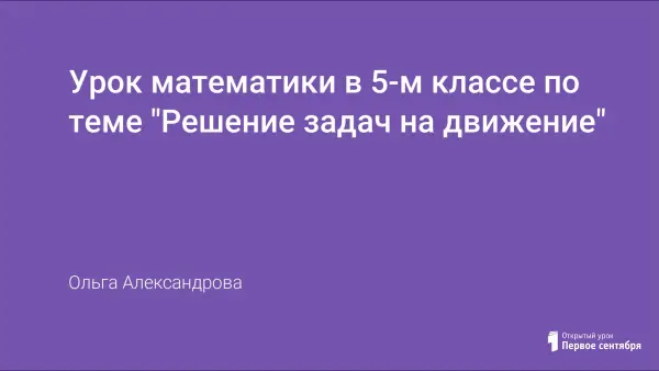 Материал урока представляет систему задач по теме "Движение". Цель: помочь учащимся более полно овладеть технологиями решения задач по данной теме. На протяжении всего урока используется презентация, составленная с помощью программы Microsoft PowerPoint, позволяющая повысить интерес учащихся к предмету, развивать активность и самостоятельность.